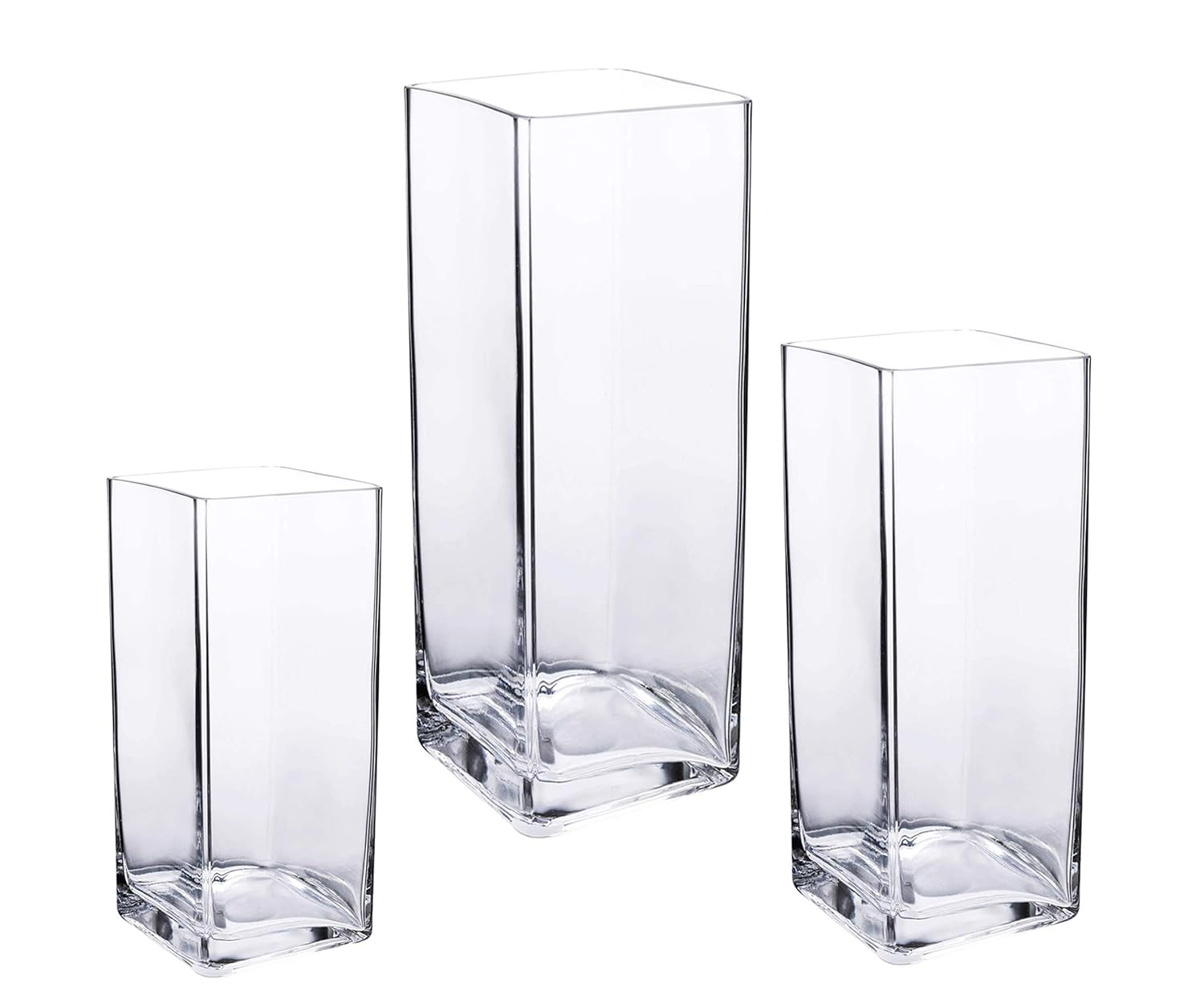 Glass Tall Square Vase -10 X 4 Inches, 8 X 4 Inches, 6 X 4 Inches, Clear set of 3