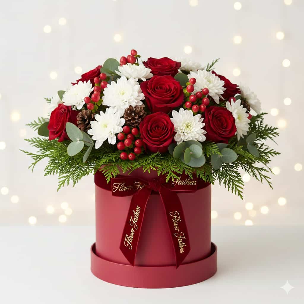 Perfect for romantic celebrations, anniversaries, or festive gifting, this luxury arrangement brings together classic colour contrast and premium design. The structured box style adds sophistication, while the fresh blooms ensure lasting beauty and impact.